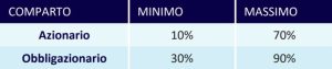 L’allocazione del portafoglio varia nel corso del tempo allo scopo di realizzare l’obiettivo di gestione e di contenere il rischio del portafoglio entro il profilo di rischio determinato. Le principali tipologie di strumenti finanziari in cui investe il Fondo sono quote di OICR/ETF, denominate prevalentemente in Euro, che principalmente investono in titoli azionari e titoli obbligazionari quotati in mercati regolamentati, senza alcuna particolare specializzazione settoriale. La liquidità presente su depositi bancari a vista è residuale. Gli attivi sono investiti secondo la seguente ripartizione: