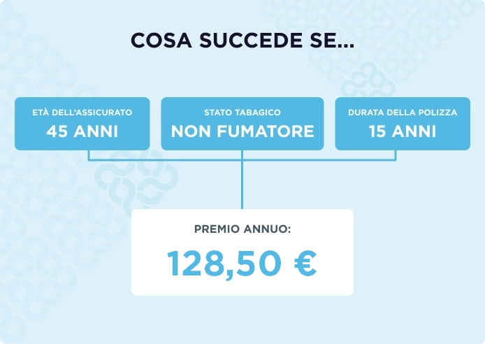 Inserisci il capitale che desideri assicurare: il nostro simulatore ti permetterà di calcolare il premio annuo da versare in base alle variabili previste, quali età assicurativa, durata del contratto e stato tabagico.